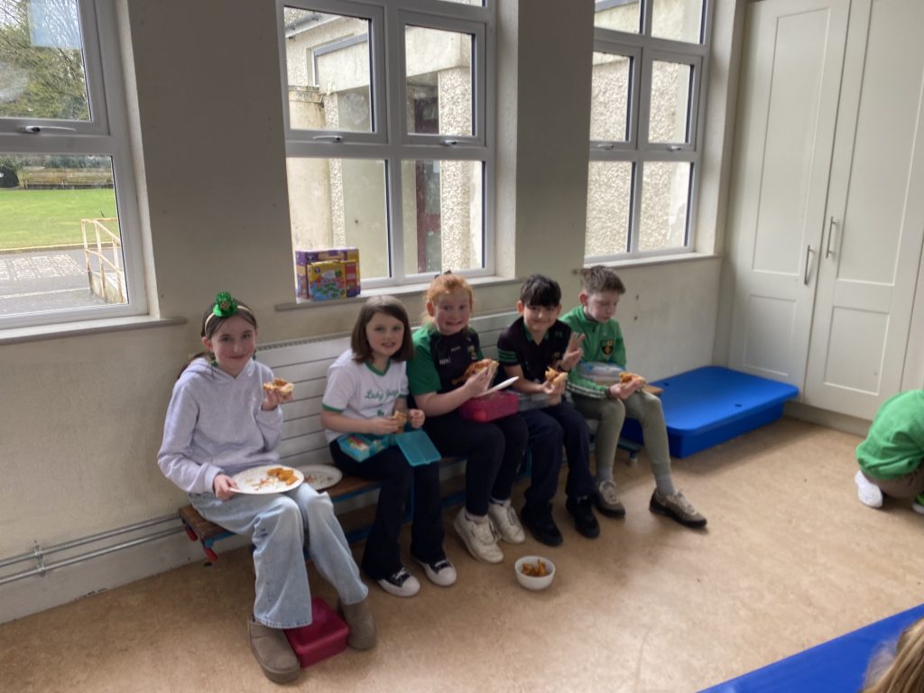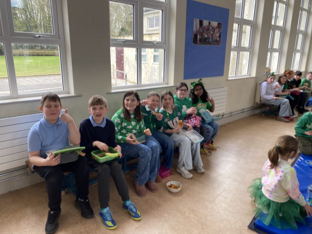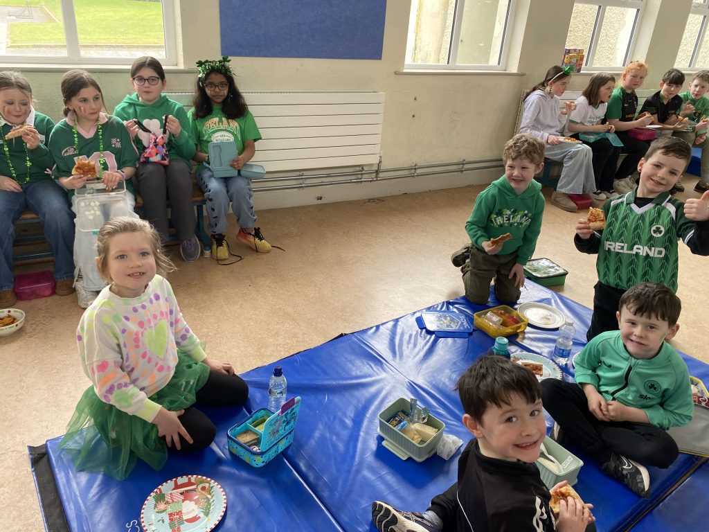 We had our annual Green Day. The children wore green to celebrate St. Patrick’s Day. We even had pizza to say well done to the children for being so good when we had our recent visit from the district inspector. We were really proud of your answers, and you represented our school so well, we thought that pizza was the least that you deserve! We also had a longer playtime!